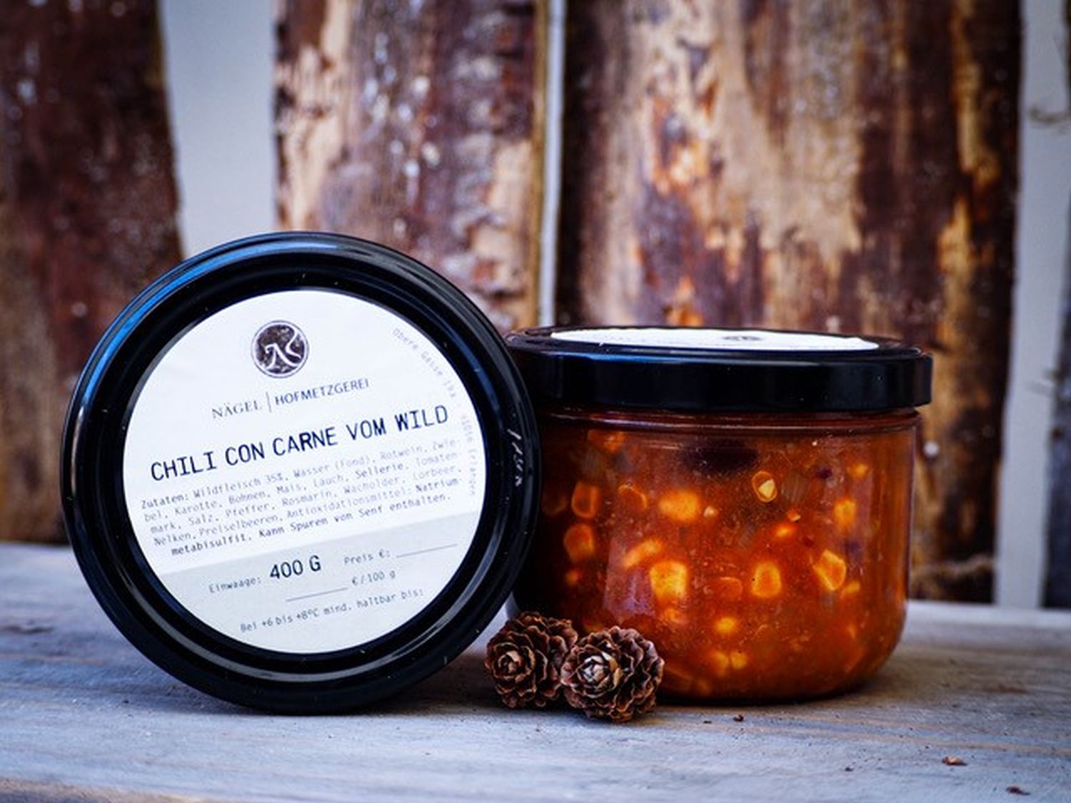 Unser Chili con Carne besteht aus bestem Wildfleisch mit feinsten Tomaten, Kidneybohnen, Mais und dem klassischen Chili-Gewürz. Die Schärfe ist trotz alle dem sehr angenehm und kann je nach Belieben bekräftigt werden.