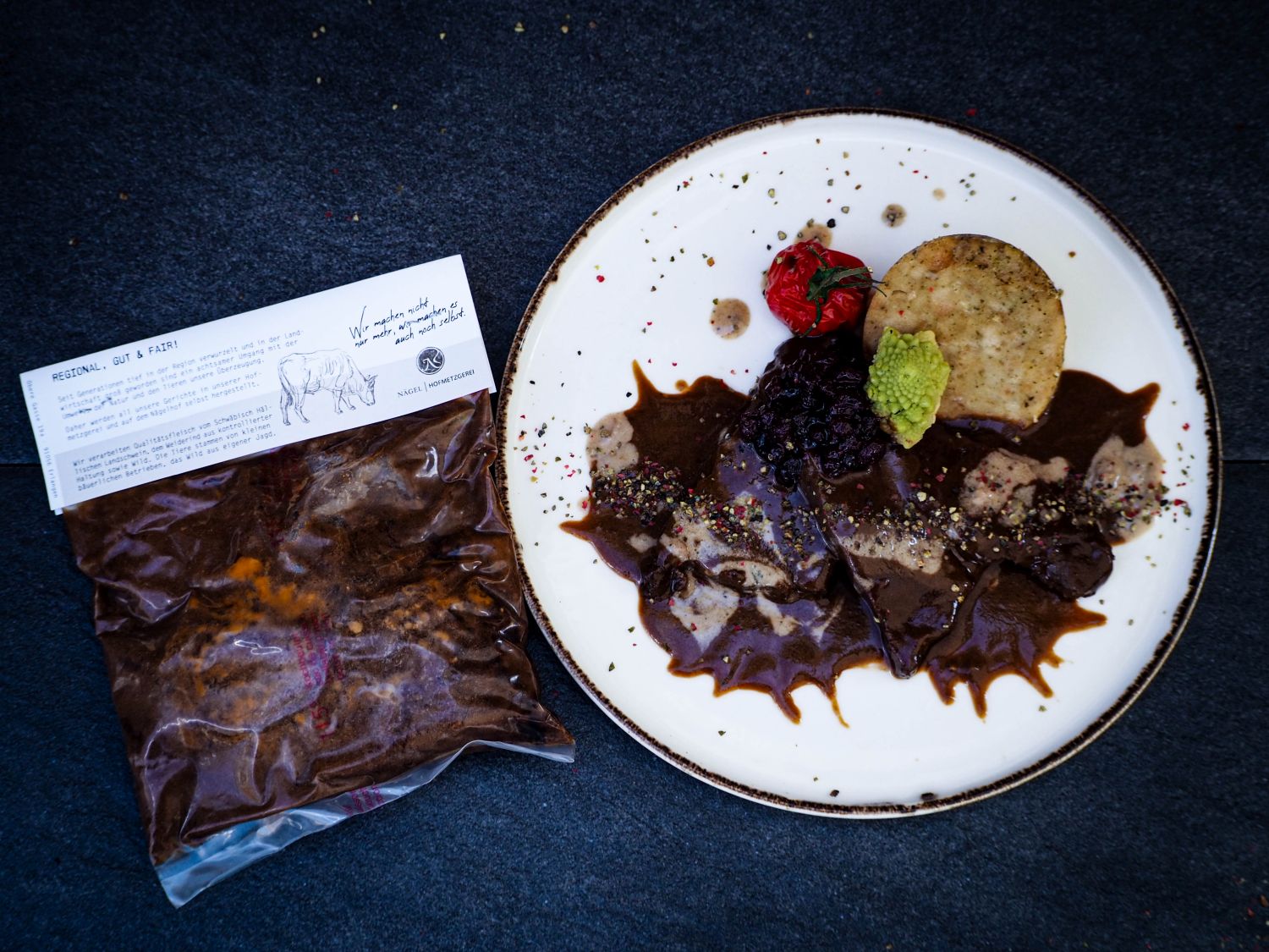 Geschmorte Rinderbäckchen sind an sich ein altes, dann etwas in Vergessenheit geratenes Gericht. Nicht bei uns: wir haben es wiederbelebt und mit einer leckeren Burgundersauce verfeinert. Zubereitung: Wasser zum Kochen bringen. Beutel in das kochende Wasser legen. Topf von der Platte nehmen und gemäß Zeit auf der Packungsbeilage im heißen Wasser ziehen lassen.