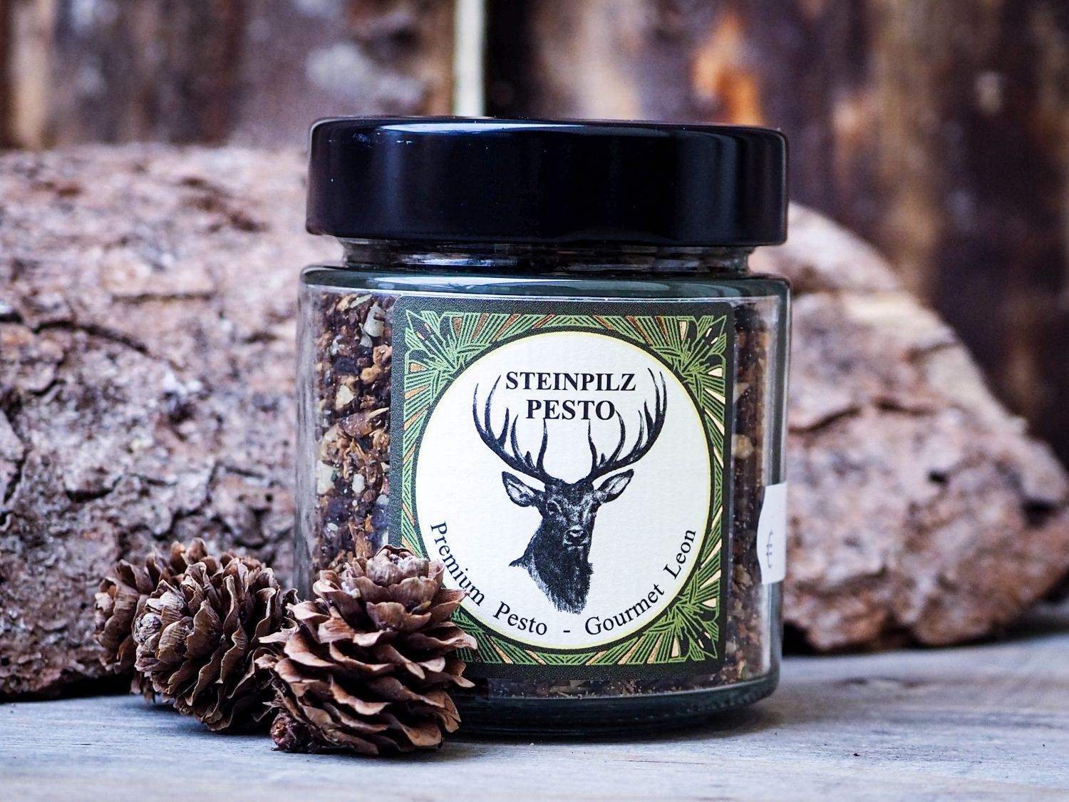 Steinpilze, Parmesan-Käse, Mandeln, Basilikum, Thymian, Knoblauch, Gemüsebrühe. Kann Spuren von Nüssen enthalten. Glutenfrei.